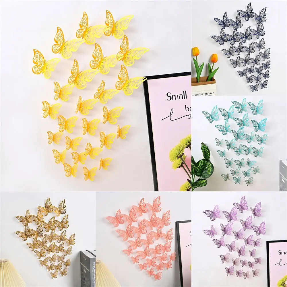12Pcs/pack 3D Butterfly Decals Stickers Hollow Butterflies Wall Decals Butterflies Art Decor Wedding Party Home Decor Stickers